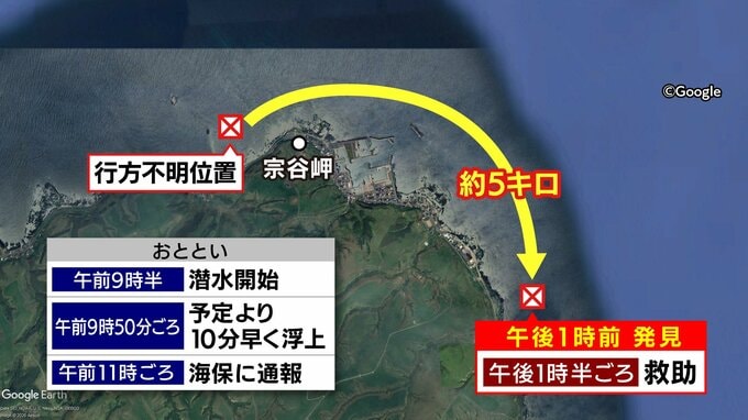 海上保安庁などによりますと、ダイビング客7人と、社長を含むインストラクター2人は、おととい午前9時半に潜水を開始。