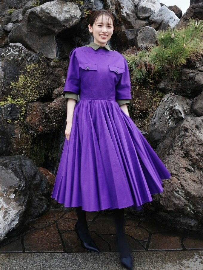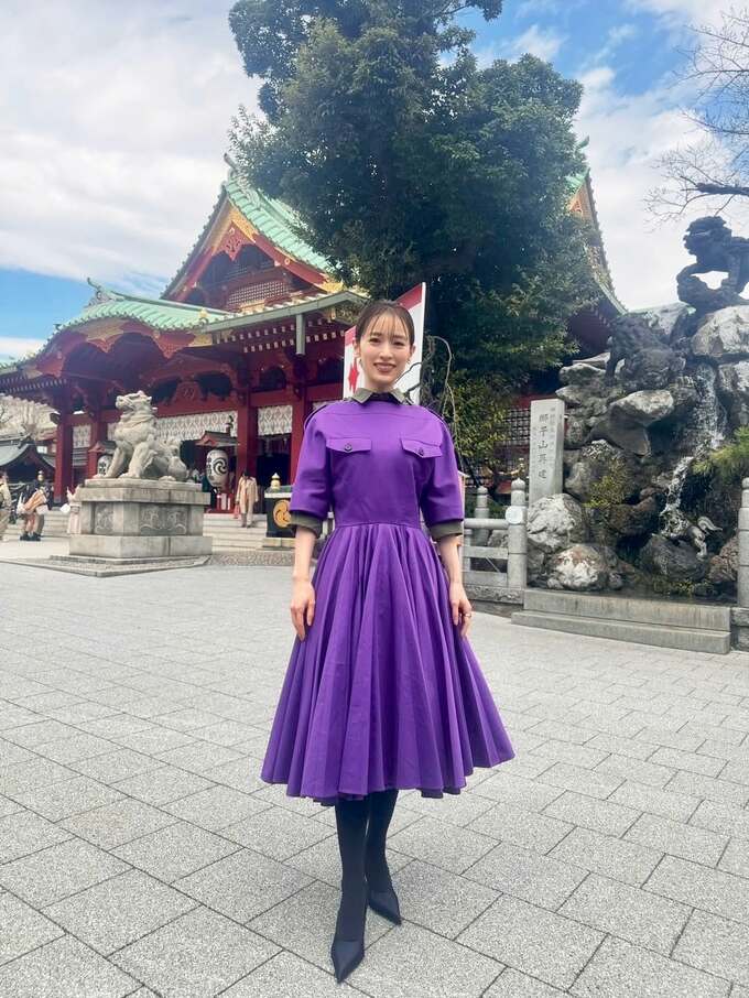 泉さんは「神田明神にて行なわれた 映画#正直不動産 イベントのオフショット」と、鮮やかな紫色のワンピースに身を包み、柔らかく微笑む画像を投稿しました。
