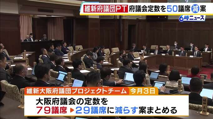 大阪府議会の議員定数を今より50議席も減らす案が維新内部で浮上しています。 大阪府議会の議員定数は、2015年に109から88に、2023年にはさらに79に削減されています。 維新の関係者によりますと大阪府議団のプ…