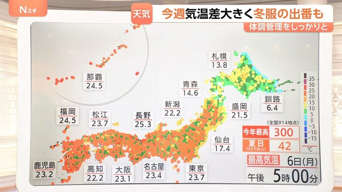 厚手のコートから半袖まで?今週は気温の変化に注意