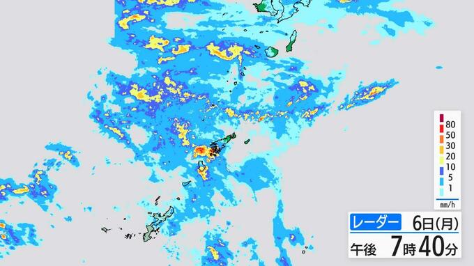 7日に予想される1時間雨量は多い所で、種子島・屋久島地方、奄美地方で50ミリ、薩摩、大隅地方で40ミリです。