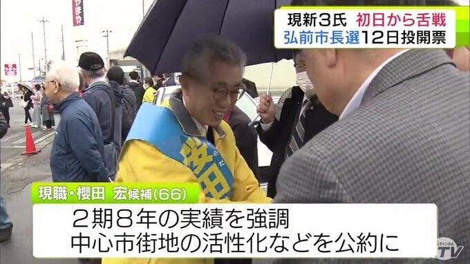 現職の櫻田宏 氏(66)は、2期8年の実績を強調し、中心市街地の活性化などを公約に掲げています。
