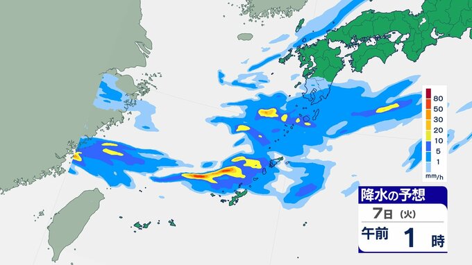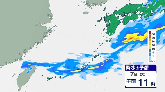 3. 【雨雲シミュレーション】7日は警報級の大雨の可能性、24時間最大120ミリの予想 沖縄本島地方