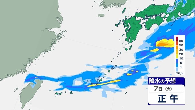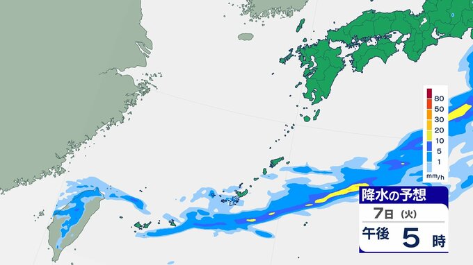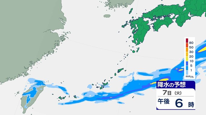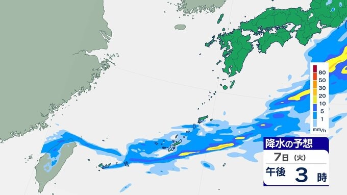 3. 【雨雲シミュレーション】7日は警報級の大雨の可能性、24時間最大120ミリの予想 沖縄本島地方