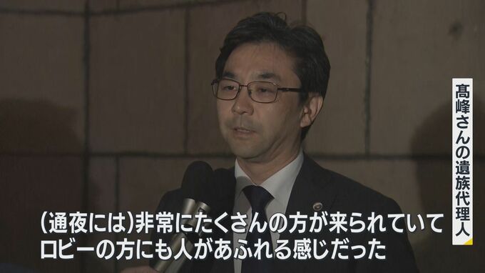 髙峰さんの遺族の代理人弁護士「バレーボールの指導を熱心にされていて、(通夜には)非常にたくさんの方が来られていて、ロビーにも人があふれる感じだった」