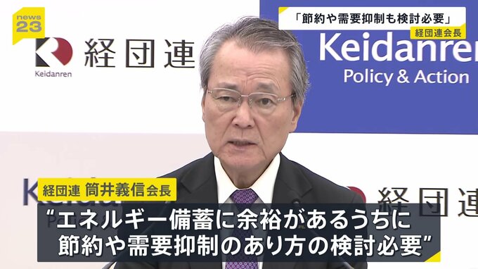 エネルギーの供給懸念が強まる中、経団連の筒井会長は節約や需要の抑制について検討を始める必要性を指摘しました。経団連 筒井義信 会長「長期化を想定した場合の次の打ち手として、需給両面で総合的な検討を急…