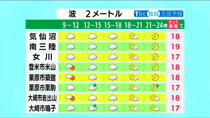 ■気仙沼:18℃ ■南三陸:19℃ ■女川:17℃