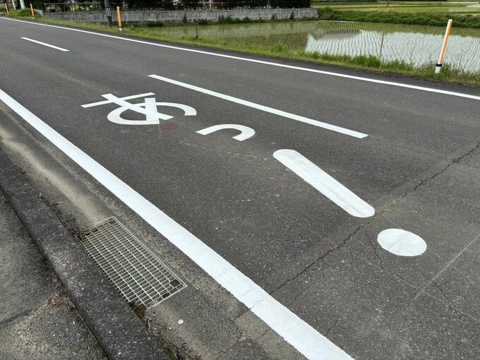 宮崎県の道路に、謎の表示が出現しました。路面に書かれているのは「あっ!」、その目的とは?