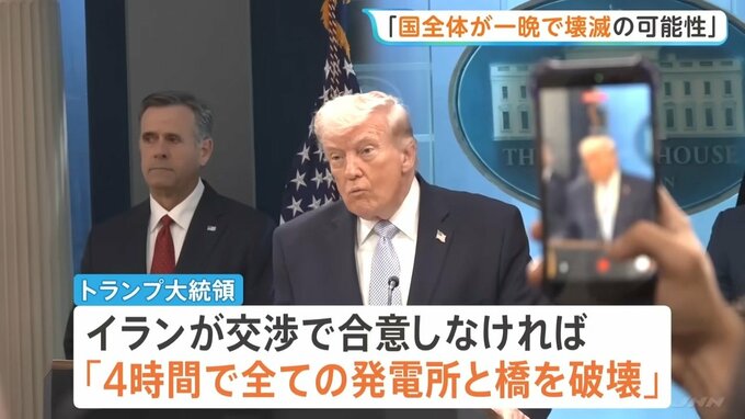アメリカのトランプ大統領は、東部時間の7日夜までにイランが交渉で合意しなければ「国全体が一晩で壊滅する可能性がある」と警告しました。