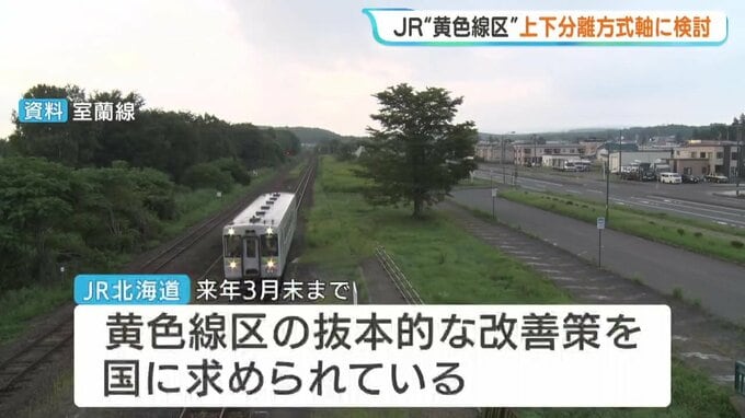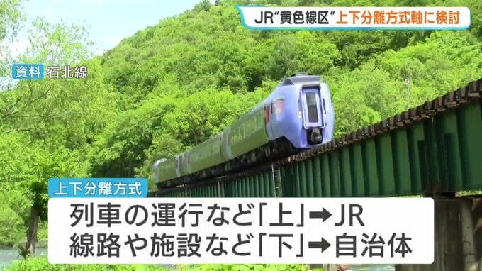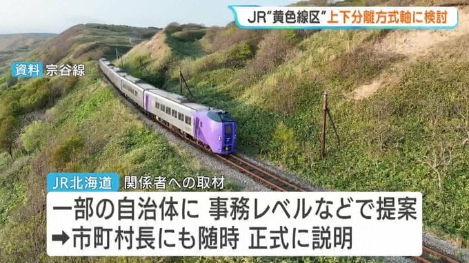 JR北海道が「単独では維持が困難」とする赤字区間のいわゆる「黄色線区」について、運行と維持管理を分担する「上下分離方式」を軸に検討していく考えを一部の自治体に提案したことがわかりました。