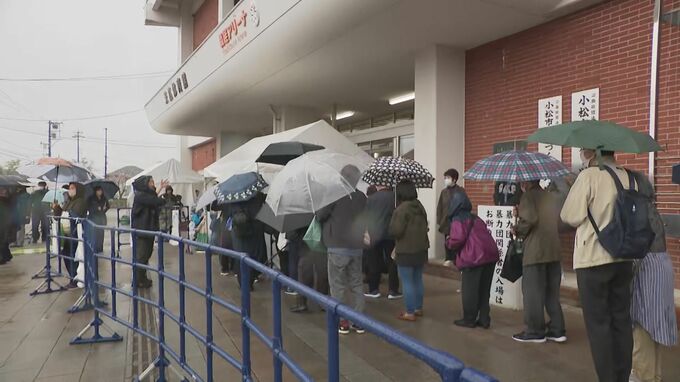 会場となった小松市の末広体育館には、津幡町出身の大の里や欧勝海ら100人以上の力士の姿を一目見ようと、雨が降る中、朝から多くの相撲ファンが詰めかけました。