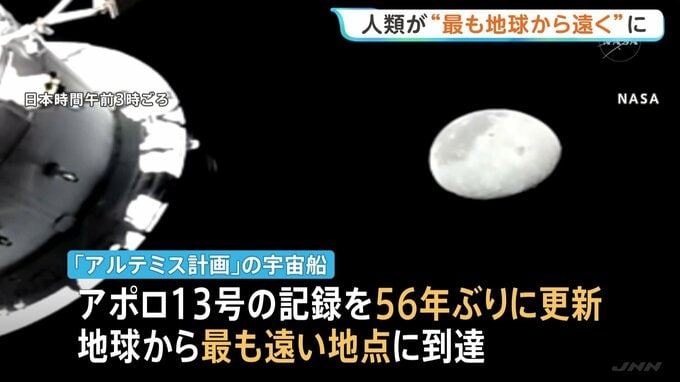 およそ半世紀ぶりとなる有人での月の周回飛行に向け打ち上げられた宇宙船は、きょう未明、56年ぶりに記録を更新し、人類史上、最も地球から遠い場所に到達しました。半世紀ぶりとなる有人での月の周回飛行を目指す…