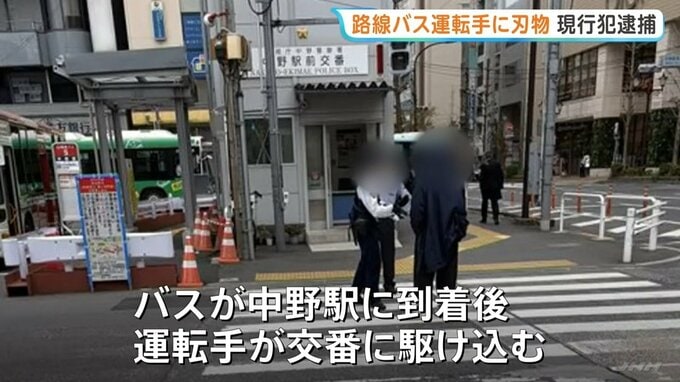 警視庁によりますと、運転手は中野駅に到着後に交番に駆け込んだということですが、60代の男は運転手の後を追ってきていて、その後、警察官に暴力行為処罰法違反の疑いで現行犯逮捕されました。