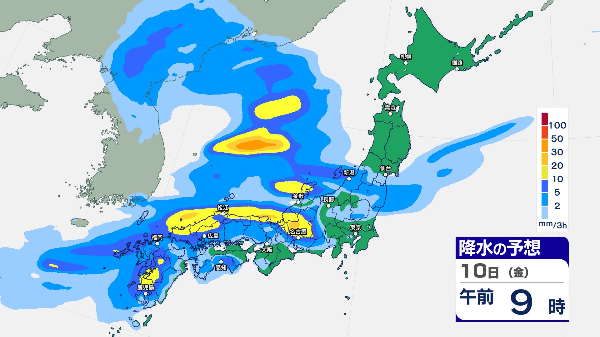 【 今後の雨 】10日(金)にかけて荒れた天気に? 非常に激しい雨のおそれも 九州北部では9日は暴風に警戒 【9日(木)~14日(火)午後3時の雨シミュレーション・9日午前10時更新】|TBS NEWS DIG