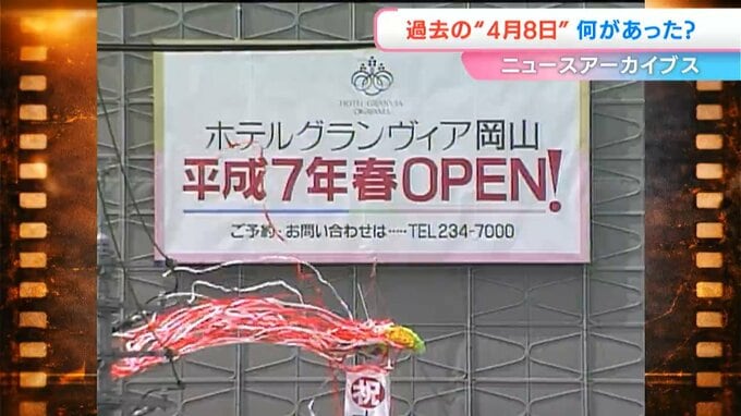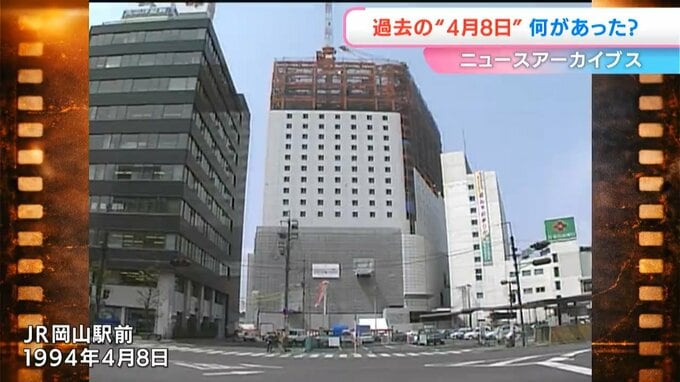 変わって、1994年。JR岡山駅前に建設されていたホテルグランヴィア岡山で最後の鉄骨をつり上げる上棟式が行われました。