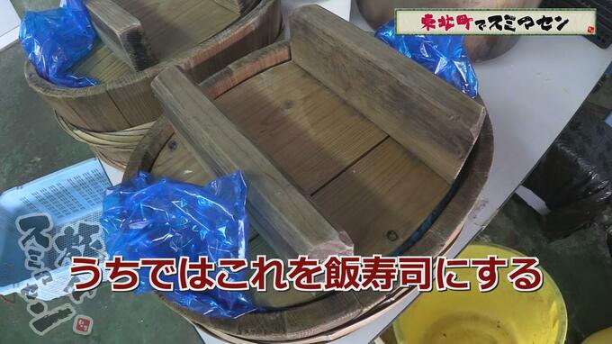 水槽の中には、大きなウグイが泳いでいます。こちらの店では、このウグイを使って飯寿司を作り販売しているそうです。