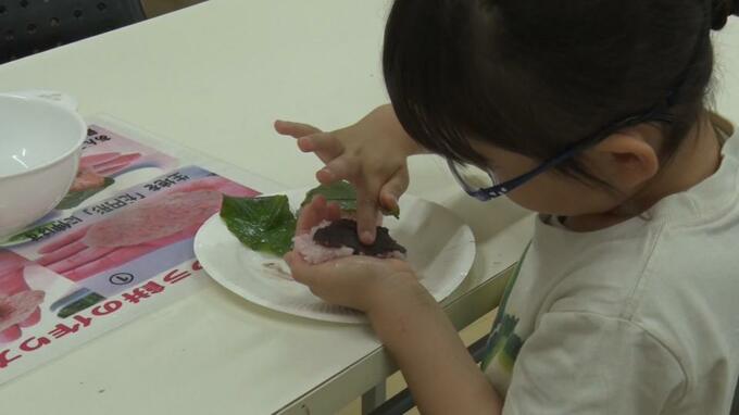 春の和菓子として親しまれている桜餅を、親子で手作りする体験イベントが沖縄市で行われました。