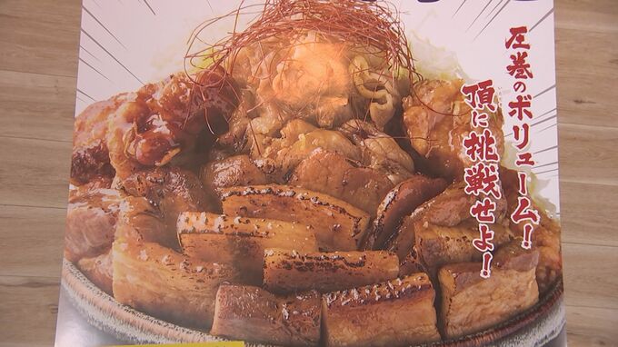 ごはんの上に大量の豚肉などが積み上げられた超大盛りメニューで総重量はなんと3キロ!