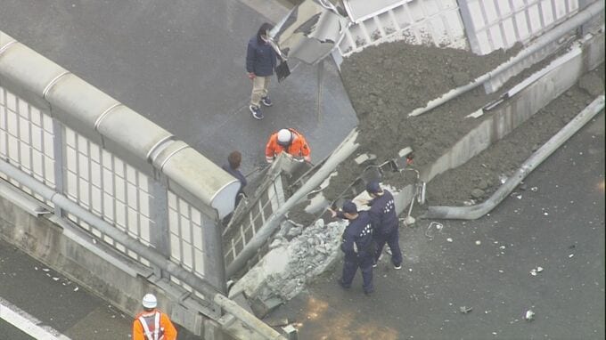 警察などによると、7日午後0時半前、大阪府羽曳野市古市の南阪奈道路で、通行人から「高速道路からダンプカーが落ちてきた」と通報がありました。