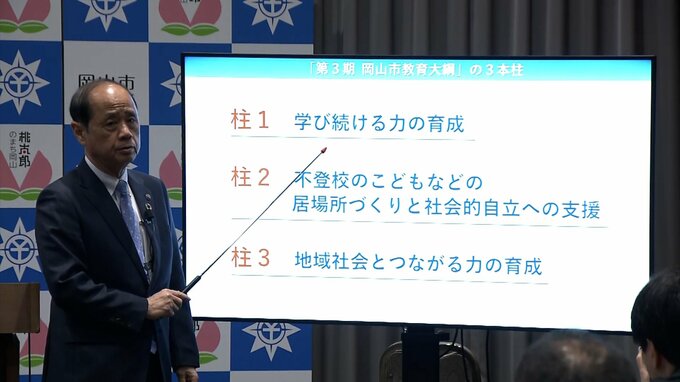 岡山市は10年前から5年ごとに教育方針を定めていて、不登校の抑制などに取り組んでいます。岡山市では、おととし(2024年)不登校になった子どもは100人当たり1.32人で、全国平均を下回るものの増加傾向だといいます。これを受けて岡山市は今年度から民間のフリースクールの利用料を一部補助するなど、学校外での支援を拡充する方針を示しました。
