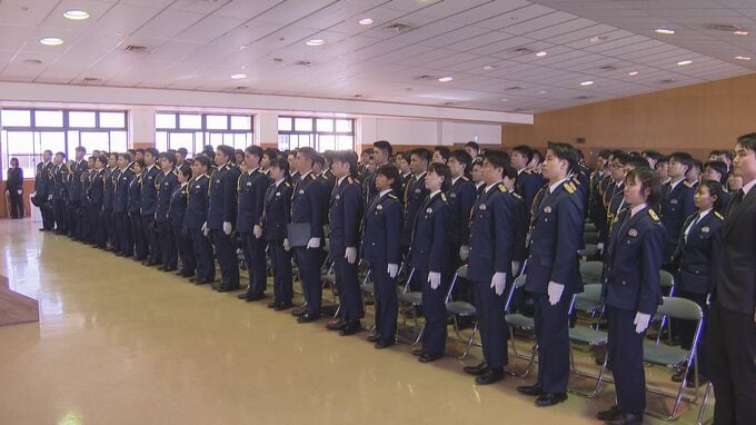 福岡県警察学校で7日入校式が開かれ、この春採用された警察官たちが決意を新たにしました。