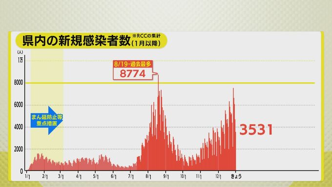 31日は、県全体で3531人の感染が発表されました。また、患者4人が亡くなったということです。