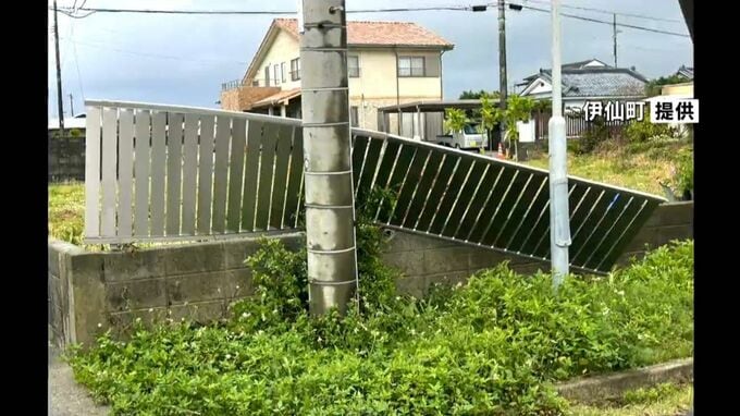 鹿児島県の伊仙町で7日朝、最大瞬間風速22.3メートルの非常に強い風が吹き、フェンスが飛ばされるなど被害がでました。