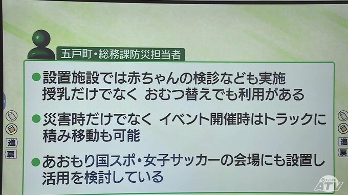 今回紹介した「ボックス型の個室」について、青森県内では五戸町が初めて導入しました。五戸町では、2025年11月に3台導入されました。設置場所は、五戸町立公民館(指定避難所)、ひばり野スポーツ交流センター、五戸町農村環境改善センター(指定避難所)の3か所になっています。