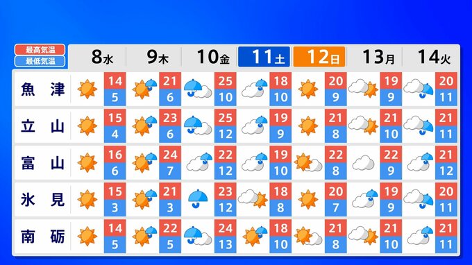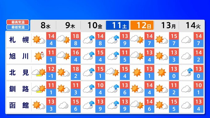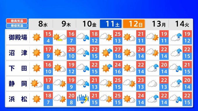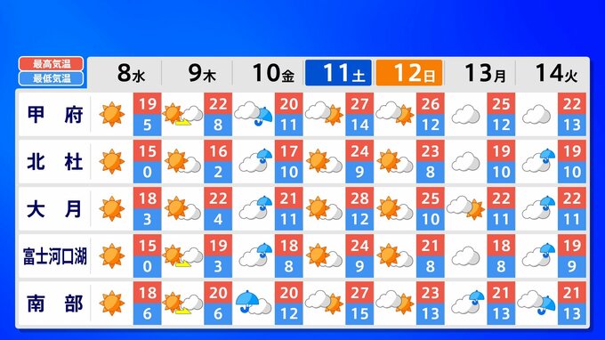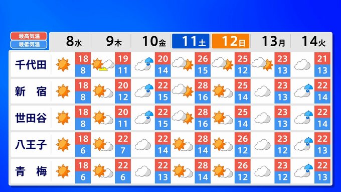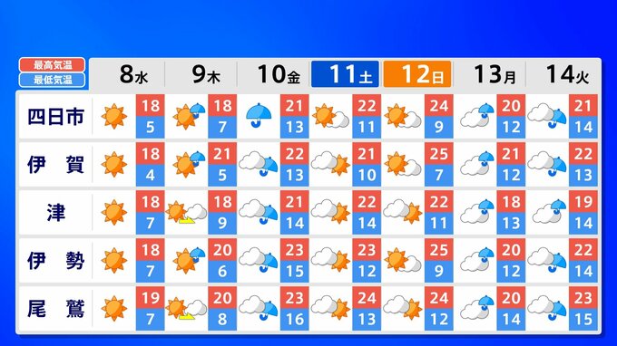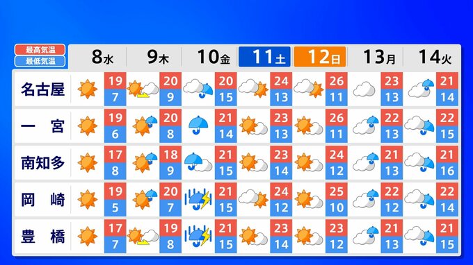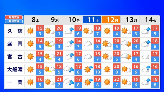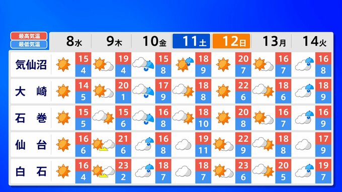【台風のたまご=熱帯低気圧】発生へ 沖縄の南へ北上か? 台風上陸の最早記録は「4月25日」【雨と風のシミュレーション8日(水)~18日(土)/全国各都市の週間予報】 南日本放送 2026年4月7日(火) 19:30 国内 天気 全国各都市の週間予報「8日(水)から14日(火)」 週間予報を『各都道府県につき5都市』ずつ画像で掲載しています。10日(金)ごろは、低気圧が発達しながら⽇本海から北⽇本に進むため、11日(土)は北日本を中心に荒れた天気になるおそれがあります。画像でご覧ください。 ▼この記事をはじめから → 【台風のたまご=熱帯低気圧】発生へ 沖縄の南へ北上か?