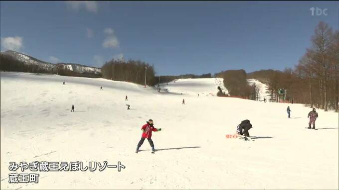 蔵王町のスキー場では県内外から訪れたスキーヤーなどが今年最後の滑りを楽しみました。蔵王町のみやぎ蔵王えぼしリゾートには県内外から家族連れなどが訪れスキーやソリ滑りを楽しみました。ゲレンデには多いとこ…