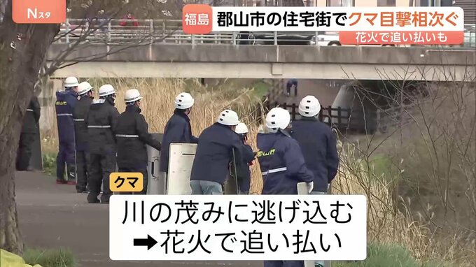 福島県郡山市の住宅街では、昨夜からけさにかけてクマの目撃が相次いでいて、市が花火を使った追い払いを行っています。きょう午前8時ごろ、福島県郡山市の「大島自然ふれあい広場」に現れたクマの映像です。郡山…