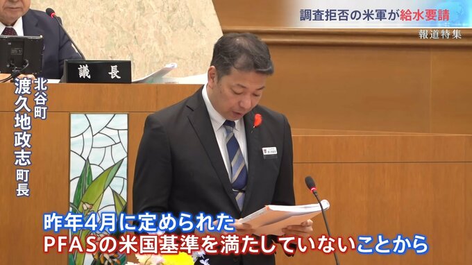 「米軍からキャンプ桑江の浄水場が、昨年4月に定められたPFASの米国基準を満たしていないことから、『北谷町からの給水に切り替えたい』との要望がござました」