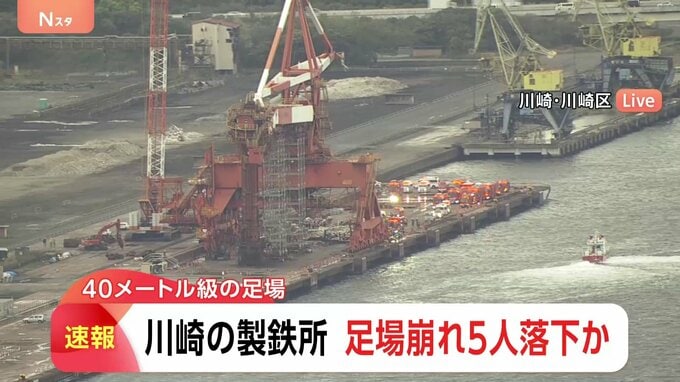 消防などによりますと、きょう午後4時半前、川崎市川崎区のJFEスチールの工場で「40メートル級の足場が崩れ、複数の人が落下しました。海上にも落ちてきている可能性があります」と119番通報がありました。また、…