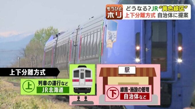 地元の関係者によりますと、JR北海道は、鉄道を存続させる仕組みのひとつとして、自治体が線路や施設を維持管理し、JRが列車の運行を担う「上下分離方式」の提案を検討しているということです。