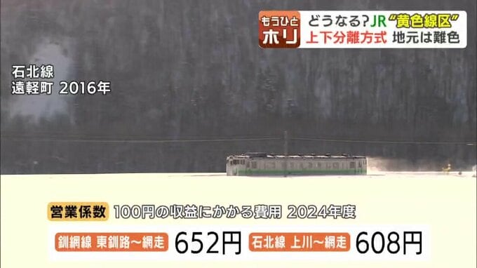 100円の収益を得るために600円以上の経費がかかり、特に石北線は、毎年50億円近い赤字で、廃止も議論されています。