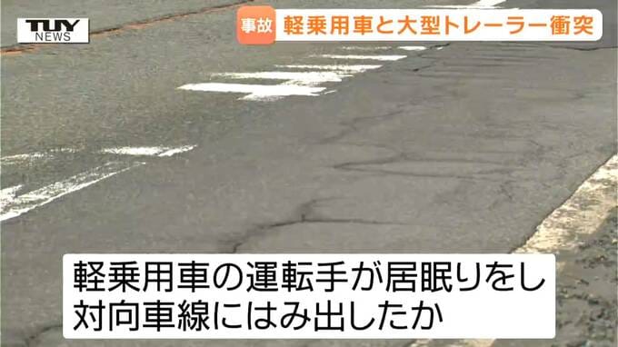 消防などによりますと軽乗用車は仙台市から東根市方向に、大型トレーラーは東根市から仙台市方向に走っていました。