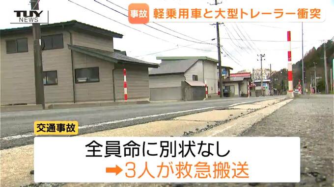 きょう午前、東根市で軽乗用車と大型トレーラーが衝突する事故があり、4人がけがをしました。