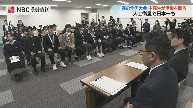 宇宙探査技術で日本代表!長崎西高物理部「模擬人工衛星」など中高生12競技の精鋭が全国大会の快挙報告【長崎】 To view this video please enable JavaScript, and consider upgrading to a web browser that supports HTML5 video 長崎放送 2026年4月7日(火) 20:12 国内 この春行われた部活動などの全国大会で優秀な成績を収めた中学生と高校生が、7日、長崎県庁で、大会での活躍を報告しました。 中高生12競技の精鋭が県庁に集結 報告会には、春の全国大会で3位以上の成績を収めた12の競技の団体・個人が出席しました。