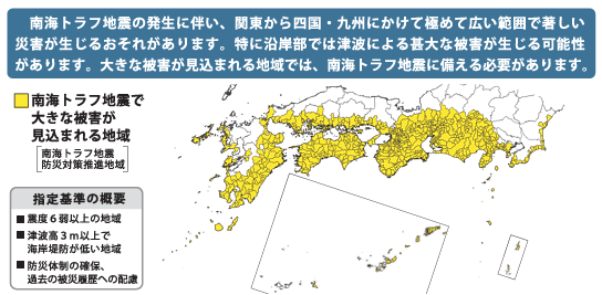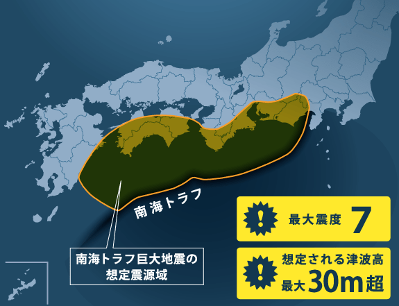 南海トラフ沿いでのマグニチュード8から9クラスの巨大地震は、平常時であっても「今後30年以内に発生する確率が高い」と評価されています。