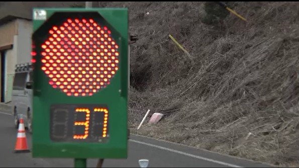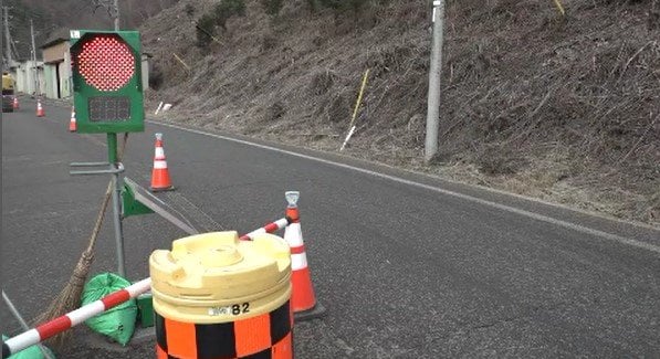 片側交互通行の仮設信号機を…