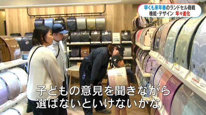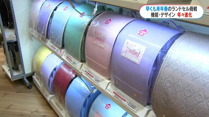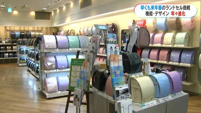 鹿児島市の山形屋です。今月から来年春向けのランドセル、およそ150種類取り揃えています。