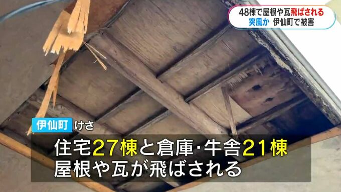 伊仙町によりますと、7日朝、町内の住宅27棟と倉庫・牛舎21棟で屋根や瓦が飛ばされ、15か所で倒木が確認されました。けが人はいませんでした。