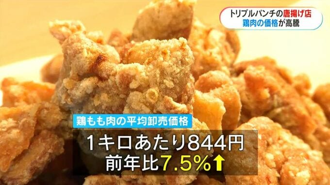 農林水産省によりますと、鶏もも肉の平均卸売価格は1キロあたり844円。去年の同じ時期より7.5%上昇しています。
