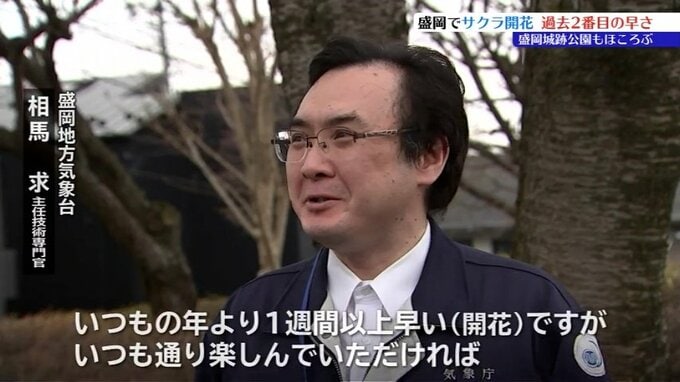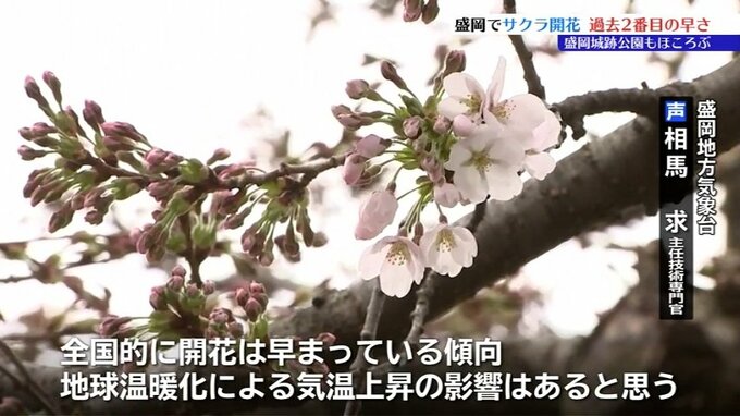 これまで盛岡では4月末に開花することが多かったものの、ここ数年4月中旬の開花も増えてきたということです。