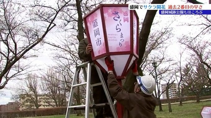 公園内では10日から盛岡さくらまつりが始まるのを前に、まつりのライトアップに使用する灯籠の設置作業が行われていました。