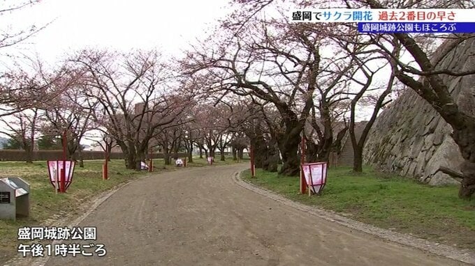一方、盛岡市内丸の盛岡城跡公園の桜は・・・。