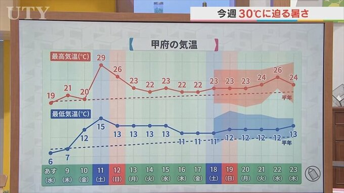 とは言っても、ずっと平年よりも気温が高い状況が続くんですね22~23℃。そして朝の最低気温も平年よりも高い状況が続きます。