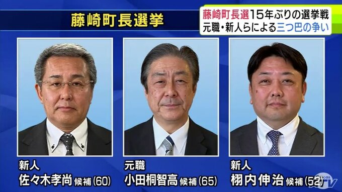 公職選挙法違反で前の町長が辞職したことに伴う、青森県藤崎町の町長選挙が7日に告示され、元職と新人あわせて3人による15年ぶりの選挙戦が確定しました。