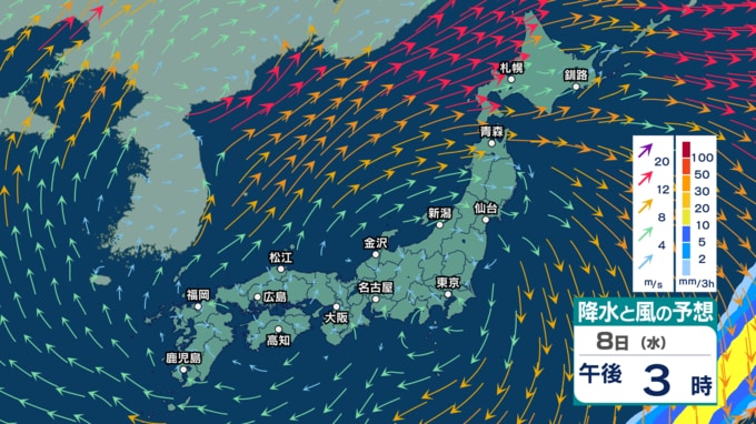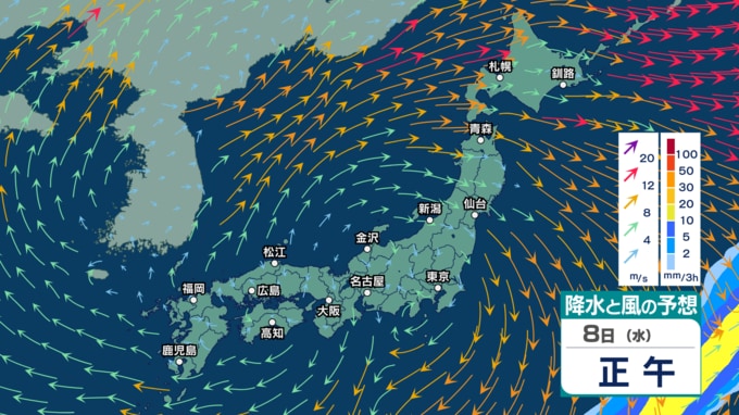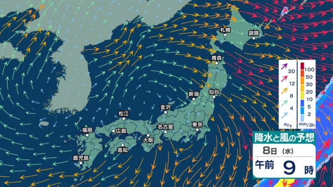 【 今後の雨 】9日(木)は西日本で雷を伴う激しい雨の恐れ その後は各地で雨風強まる? 北日本中心に大荒れの恐れも【8日(水)~12日(日)の雨シミュレーション・7日午後10時更新】 新潟放送 2026年4月7日(火) 22:00 8日(水)の雨のシミュレーション