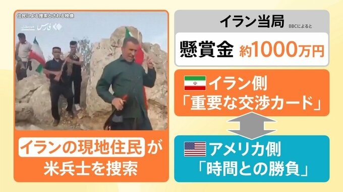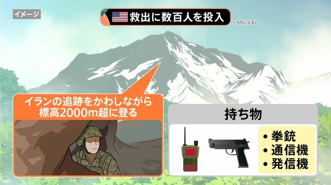 このとき、兵士は拳銃や通信機、発信機などを持っていたということです。イラン側に通信機が傍受されない形で、アメリカ側にのみメッセージを送れるような手段で、CIAが位置を特定し、救出の際には兵士のいる周囲を空爆しイラン軍が近づけないようにしたという内容も会見で明らかにされました。